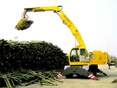 QLYS-DZ系列液壓輪胎式抓料機(jī)是一種流動式裝卸、堆垛和拆垛專用設(shè)備,含有多項(xiàng)專利技術(shù)。該產(chǎn)品采用折疊式吊臂,克服了汽車起重機(jī)軟索起重時(shí)抓斗易打轉(zhuǎn)和作業(yè)時(shí)無下壓力,而對較積實(shí)的物料抓取效果差等不足。是對草葦、木材、毛竹、廢紙、土、砂、石等泡松散軟原料進(jìn)行裝卸、堆垛和拆垛作業(yè)的最佳設(shè)備。