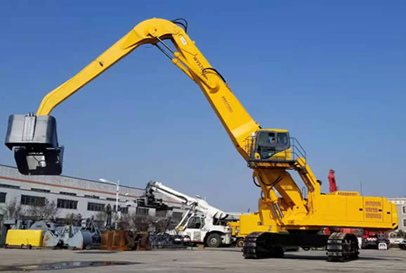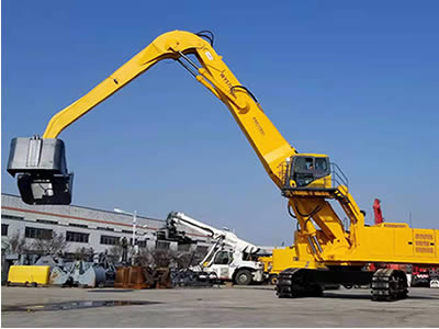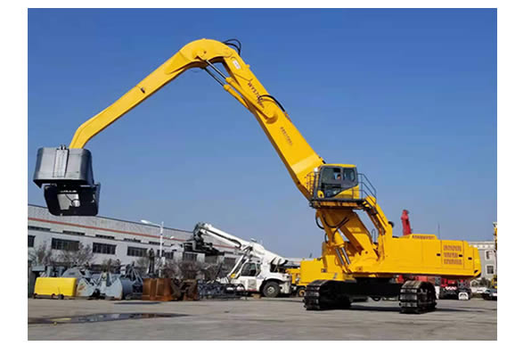 該設(shè)備分別采用了大功率“國三”標(biāo)準(zhǔn)發(fā)動機(jī)、380V 西門子電機(jī),以及全套采用施耐德控制系統(tǒng)拖動控制兩套力士樂液壓動力機(jī)構(gòu)及先導(dǎo)液力控制的世界首臺“雙動力”抓料機(jī)。該機(jī)設(shè)計了寬體結(jié)構(gòu)梁,以及加強(qiáng)型可更換正、負(fù)差的二節(jié)式作業(yè)主臂,最大吊重量達(dá) 25 噸、最大作業(yè)半徑為 18米。在 5 12 米作業(yè)半徑內(nèi),可配備 5.0 立方蚌殼抓斗,或 2.5 立方梅花廢鋼抓斗。