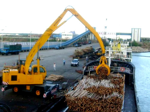 加長(zhǎng)二節(jié)臂“雙動(dòng)力”抓木機(jī)奮戰(zhàn)碼頭卸船一線