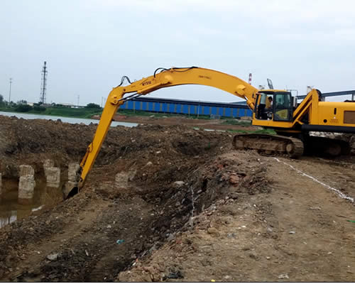 全液壓超長臂挖機,馳騁在河道清淤、溝渠挖掘工地中